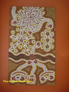 This is an Aboriginal painting we purchased when we lived in central Australia. (It hangs in our dining room.) I won’t go into it in this post, but you could learn about what the different Aboriginal symbols mean. And here are some Australian children’s books I recommend and here’s how to make a pin map of Australia.