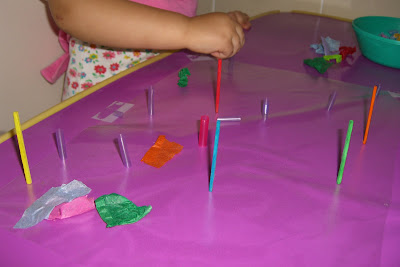 of craft match sticks and cut up straws in the bowl. When