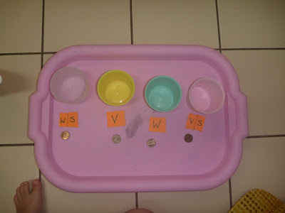 1) We prepared 4 bowls with vinegar, water, salt and vinegar,