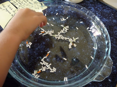 We used bits of paper from my comb binder, but any