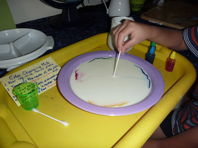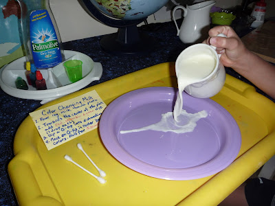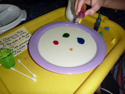 the 4 colors and hold it their for 5-10 seconds. (The milk