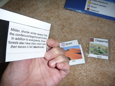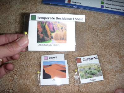 Djamie, Unfortunately, I didn't make the cards myself. I bought the picture cards online from http://teacherdesk.info/ (you can see what they look like at this link on my website: http://thehomeschoolden.blogspot.com/2010/02/blog-post.html) and I printed out the world biome map and the key fromhttp://www.science-house.org/workshops/buncombe/Mazzei/index.htmlI copied the key to my computer and using print shop (but you can use photo shop, gimp or something similar), I enlarged the key and made several copies.Someone else asked me a couple more questions about how I made the pin parts. Here's what I told her:The long pins were just straight pins I had in my sewing stuff. They are just over an inch and a half long. I'm sure I got them at a sewing store at some point.I placed the biome key word (like desert or tundra) next to a picture of it and laminated them together. Once they were laminated, I cut them out leaving extra plastic around the edges.I stuck the pin through, up through the back, then down through the bottom and covered the pin on both sides with clear packing tape. This makes it nearly impossible for my little one to pull out the pin.I hope this helps!