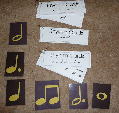 I often use the symbols just before we do a few rhythm cards. I found a wonderful set of rhythm cards at the same website. I’m using the red set 1 cards with DD and set 3 (and 4) with LD. http://laytonmusic.wordpress.com/2007/12/19/rhythm-flashcards/ I’ll post a few more pictures of the rhythm cards in the post below.