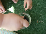 I never got a chance to post about our science center experiment last week. We planted seeds in various ways. 1) We put seeds on damp paper towels and hung them in the window. 2) We put sprout seeds in a jar on the dining room table. 3) We planted seeds in soil in jars (covered with glad-wrap to trap the moisture). 4) And, we planted some seeds in the garden.