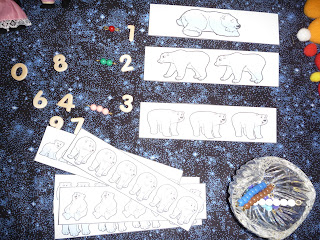 the polar bear counting with Montessori beads (well,
