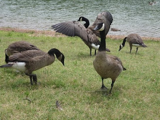 We’ve also thoroughly enjoyed the local attractions near Grams and Gramps. We’ve been to a number of shows in the past couple weeks. We saw a magic show, a stunt dog show, a ventriloquist and more. Plus, the kids have loved the local amusement park and have had lots of fun on the rides and visiting the attractions at the park. ED especially loved petting the goats, but was scared by the guinea fowl and ran away from them saying, “Don’t hurt me birdie, don’t hurt me!” I guess we gave too many warnings about the Canadian geese below.