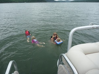 We have had a wonderful time with Grams and Gramps. One afternoon we went to the lake for the day. The water was beautiful and we all enjoyed our swim. Afterward we had a lovely time at the edge of the lake feeding the birds, turtles and fish and playing at the shady playground.