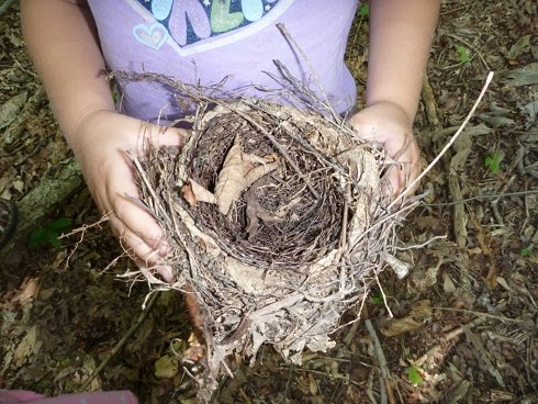 DD examined a bird’s nest we found. LD then carried it for the rest of the afternoon to bring back to add to his nature collection. |