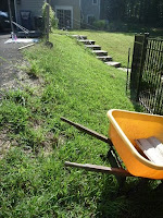 Mowing is also keeping me fit and active. I split the lawn into three sections and each section takes me about an hour and a half to do. (We definitely need to get a ride-on mower when we can work it into the budget.) In the last picture you can see the beams where I laid out a small path that I built. It leads to the compost pile I set up last week.