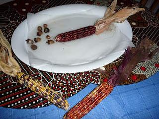 A teacher shared this fall-related science activity — soaking Indian corn in a bit of water to see what would happen. We have a large tray with a paper towel and about 1/4 inch of water. We also pour water over the cob every 2 or 3 days.