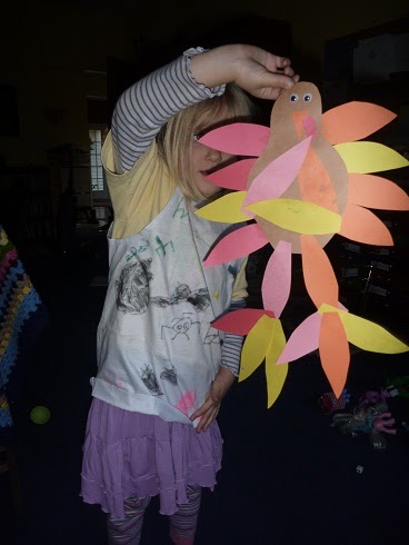 I had things out for the girls to make turkeys. This is what DD came up with!