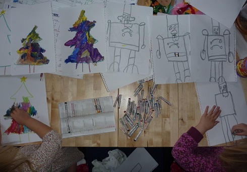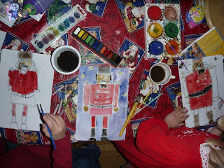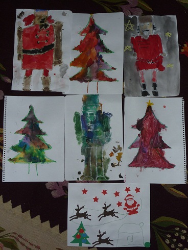 We have been enjoying holiday-themed art this past week–Christmas trees, nutcrackers, gingerbread men and more!