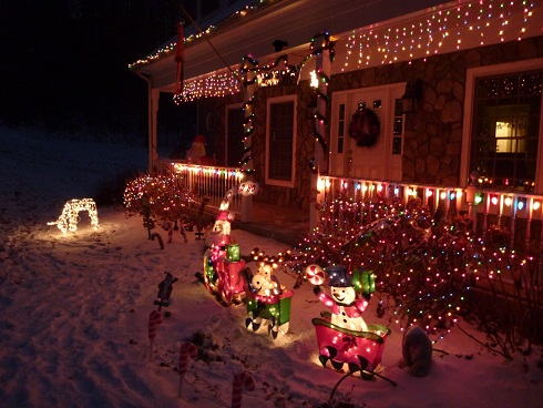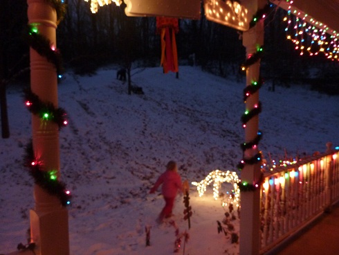 I was mentioning the steep driveway… well when I took the evening pictures above, we were out partly because the UPS truck was stuck in front of our house for nearly an hour. They kept slip-sliding around and couldn’t make it up the hill (which again is no where near as steep as our driveway!). Our house is tucked down in the hollow with hills more or less on all sides.