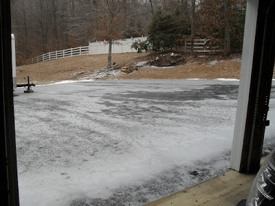 | Except that EVERYTHING is covered in ice. Imagine backing out of our garage… |
