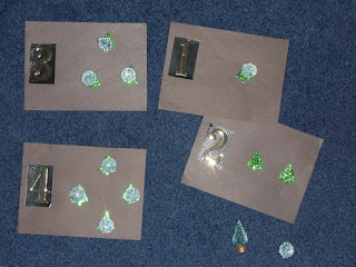 ED still enjoys the snowflake and Christmas tree numbers I made back in December. She only does this once a week or so now, but still enjoys this. |