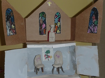We have been studying the Middle Ages. We’ve read lots of books or snippets of books about castles, knights, the Church, and feudalism. This is an activity suggested in one of the books we checked out from the library. It’s called the four alls and talks about some of the roles people had in the Middle Ages. These roles were ‘fixed by God.’ We did one diorama box for each of the four groups in this saying: