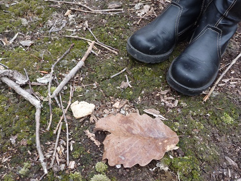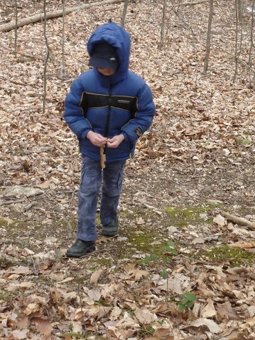 It took a lot of hunting, but we finally found one lone breadcrumb out in the woods (next to the leaf). No wonder Hansel and Gretel had such a tough time out there!