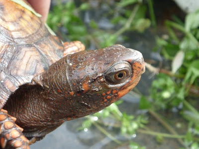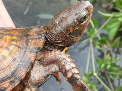 Today LD found a turtle out in the yard. We think it is an Eastern Box Turtle.