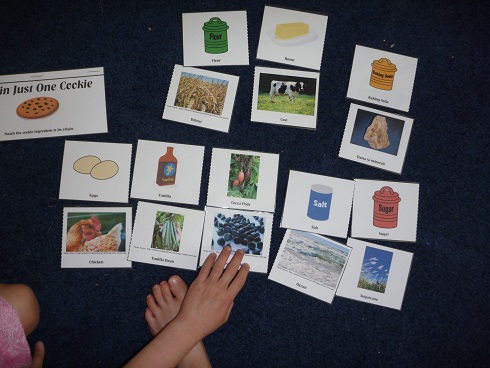 | From Plant to Food (Montessori for Everyone): This set had them find the origins for syrup, corn bread, orange juice, ketchup, pasta and jam. |
