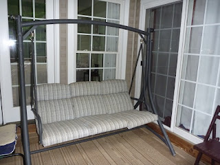 | So here’s the swing out on the deck, so that I can look out with my morning coffee at this pretty view of our backyard… |