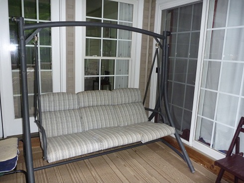 So here’s the swing out on the deck, so that I can look out with my morning coffee at this pretty view of our backyard…