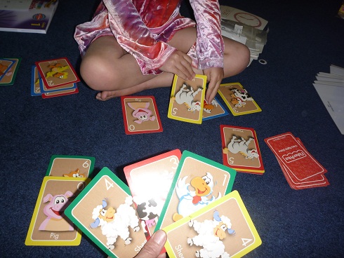 Each player started with five cards in their hand (or on the floor as the case may be!). There’s a discard pile and a draw pile.