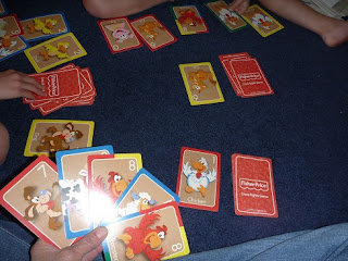 This last game was a bit different and requires fast hands and fast thinking! I set this up so each player played on their own discard pile.