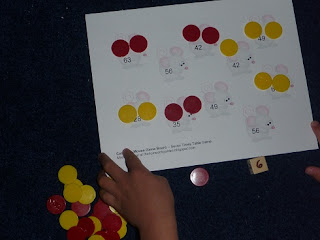 **Let’s say you roll a 4. Multiply that by 7 and place a marker on the 28 mouse. The next player rolls. If there is just one marker on the mouse they can bump the other player’s marker off the mouse. If their own marker is on that mouse and they place a second marker, then that mouse has been captured.