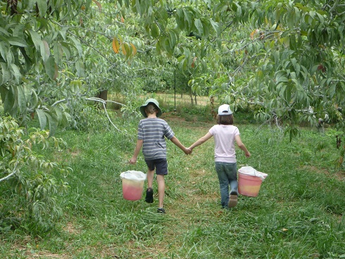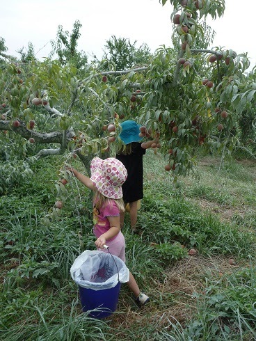Here the girls are picking peaches. We loved this wonderful recipe for Southern Peach Cobbler. In fact it was so popular with the kids and our friends that I made it twice (with help from the kids, of course!)