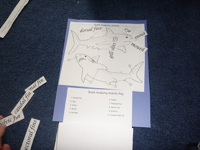 The kids can check their work by folding down the answer key under the picture. I got the parts of the fish page from Simple Schooling at currclick. (The unit is on sale at the moment for 50% off.)