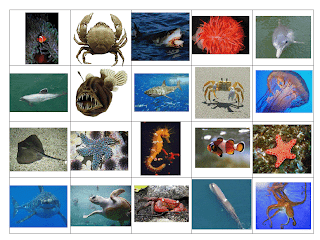 Math Grid Game: By the way, you can also use the ocean animal sheet to play a simple math grid game. Keep the animal sheet intact and print out one sheet for each player. Have each player take turns rolling the die and covering up that number of animals. The first person to cover all the animals wins that game.