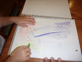| ED really enjoyed leaf rubbing and chose to use several different colors. |