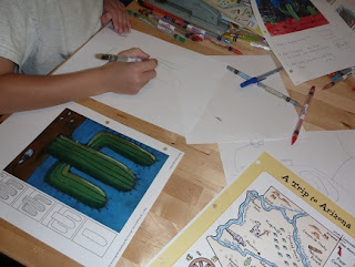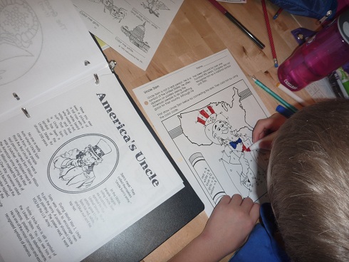 We have been working steadily on our USA landmarks and symbols unit study. This is a unit that doesn’t lend itself as well to pictures since I have pulled it together using history resources I have on hand. The kids each have a notebook and we’ve been adding to it steadily. Funny enough, LD has said he LOVES history and has been really into this unit. That amazes me a bit because it has been less project-oriented than many of our units have tended to be (and involves a lot more writing on his part).