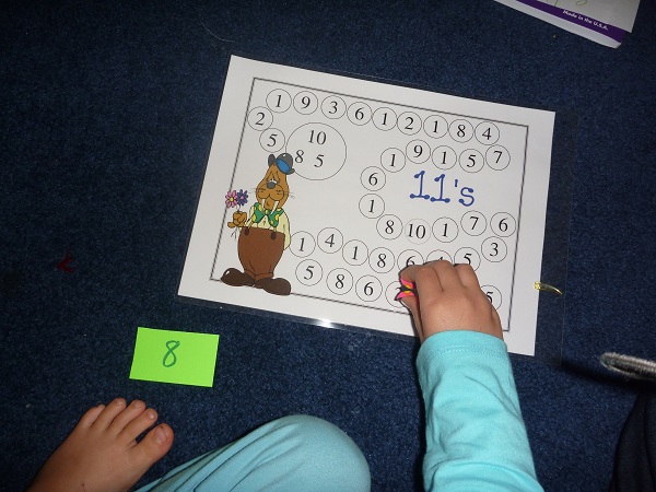 Great games. Bear is working on the combos that make ten and she likes to play memory in which she tries to match two cards whose sum is ten (ex 4 and 6).