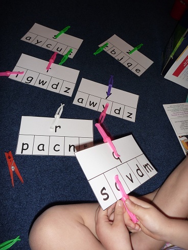 Here’s the link to the Clothes Peg Alphabet, volume 1 (lower case letters) (the link no longer works, sorry!) that you see in this first picture.