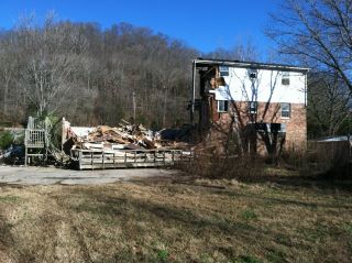 Now to my family for a moment. Sometimes it’s good to know the ending and outcome of sad events.If you’ve been reading my blog for a while, you might remember that my sister/bro-in-law and their family were victims of the May 2010 flooding in Nashville. My brother-in-law had just returned from a 9 month deployment to Iraq when the flood hit. They spent 12 hours moving as much as they could from the first floor of their home to the second. As you can see from my photo last summer, the first floor starts about 12 feet off the ground! The flood surpassed the 500 year flood mark, rising up to bed level on the second floor (the top windows of the house). They lost most everything–except things like pots and pans, dishes and the like. My sister’s family was fortunate, everyone was safe though they lost a lot of chickens and one of their pet cats. They had flood insurance unlike many in their vicinity.Well a couple of days ago (December 1st) their house (which was condemned) was demolished. There’s a photo at the bottom with half the home destroyed. But in all my sister, brother-in-law and their kids have come out happy. They have a new home — a farm they bought last summer with a three-acre lake. It’s pretty (beautiful, in fact!) and they plan to buy horses and cattle this next spring.