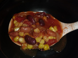 1/2 hour before getting ready to serve I add 1 1/2 cups or so of frozen corn (you can add it in first thing, but I like doing it at the end)