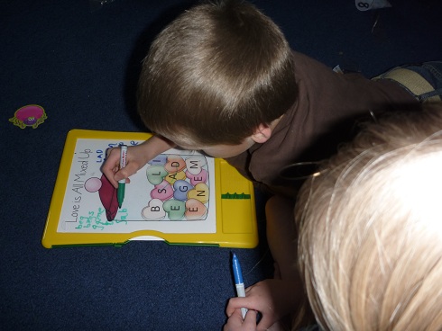 I came across a Valentine’s Boggle Game at Teacher’s Pay Teachers. I printed it out and much to my surprise both LD and DD loved it. They did it both yesterday and today and then complained that it was too easy the second time.