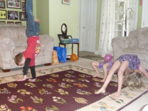 | The kids put on a gymnastics show for Grandma and Grandpa last weekend when they were here for a visit! |