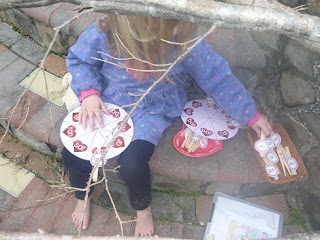 What makes us homeschoolers is that we often do traditional school subjects, but not in the conventional way. Last week when the weather was gorgeous, I saw no problem in letting the kids do their math and writing outside. If you look closely, you’ll see LD up in the tree with his math book. DD made a teepee and is doing her writing there in the picture to the left. The kids are right on par with their public school peers, just that the world is our classroom.