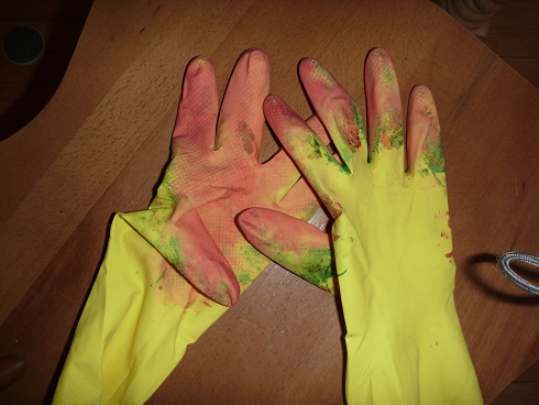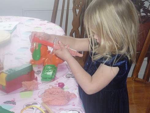 Just to mention–I made a large pot of playdough for the girls in the morning and we added the colors later in the day. If you don’t add the colors when you’re first making playdough BE SURE to wear gloves!!