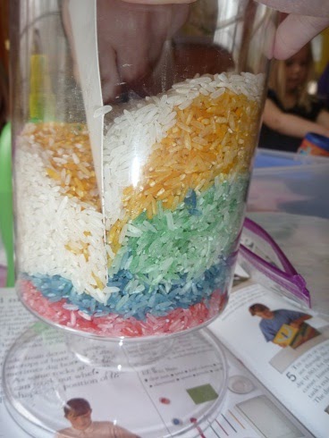 We moved the index card back and forth and watched as the grains of rice shifted and moved.