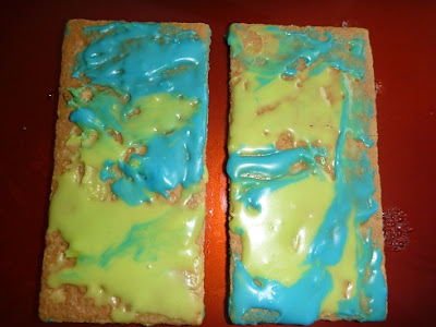 colored icing (green-continents and blue-oceans)